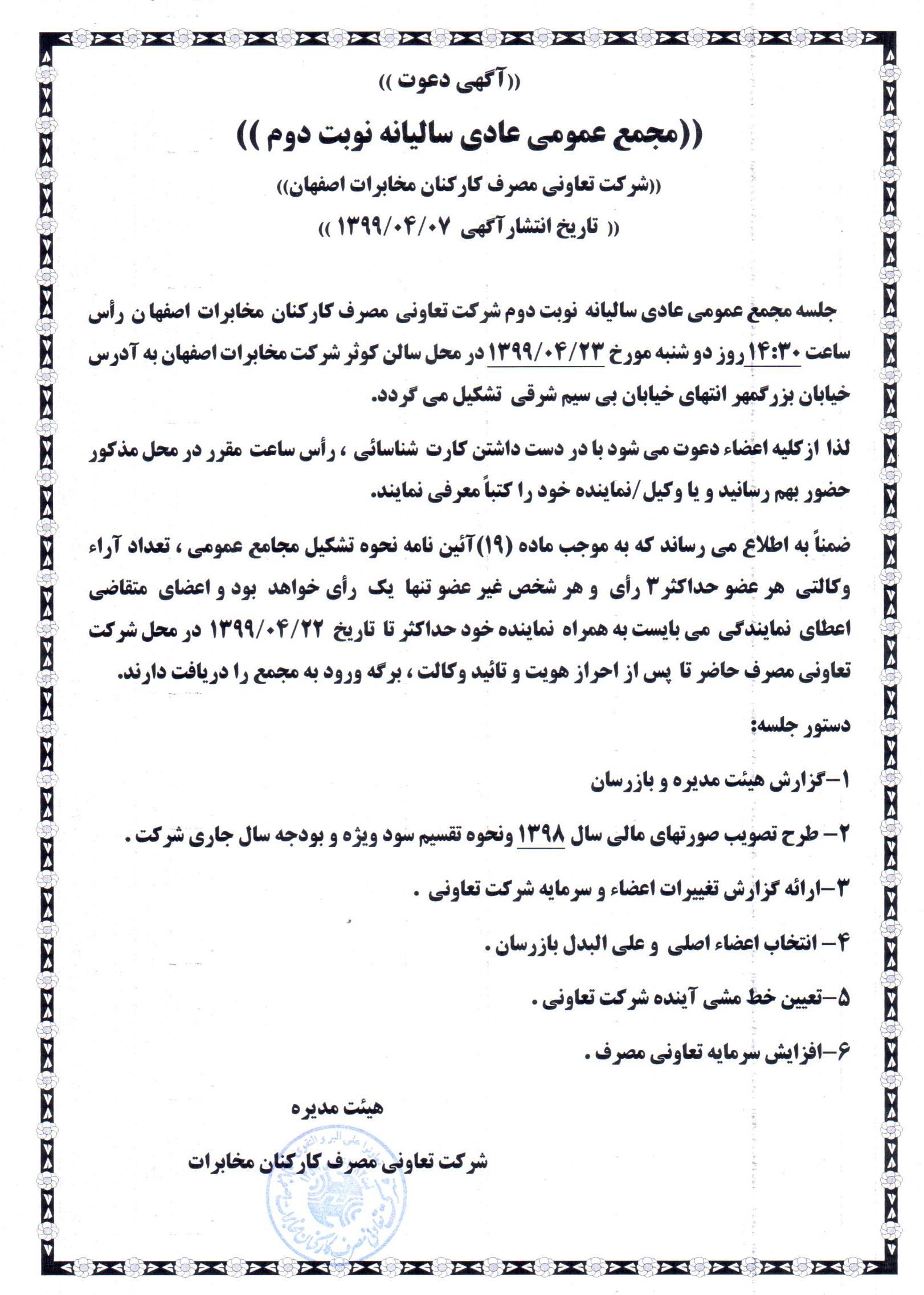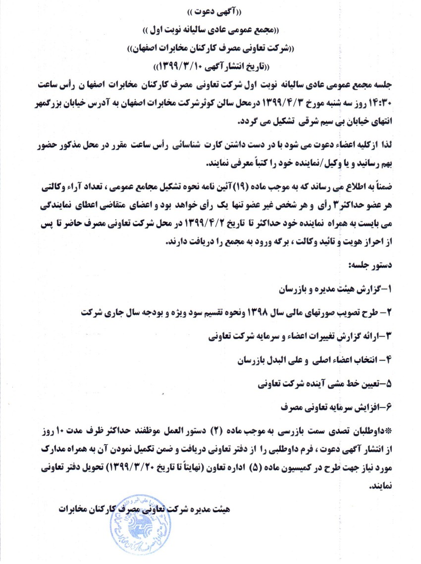 مجمع عمومی عادی نوبت دوم تعاونی مصرف مخابرات